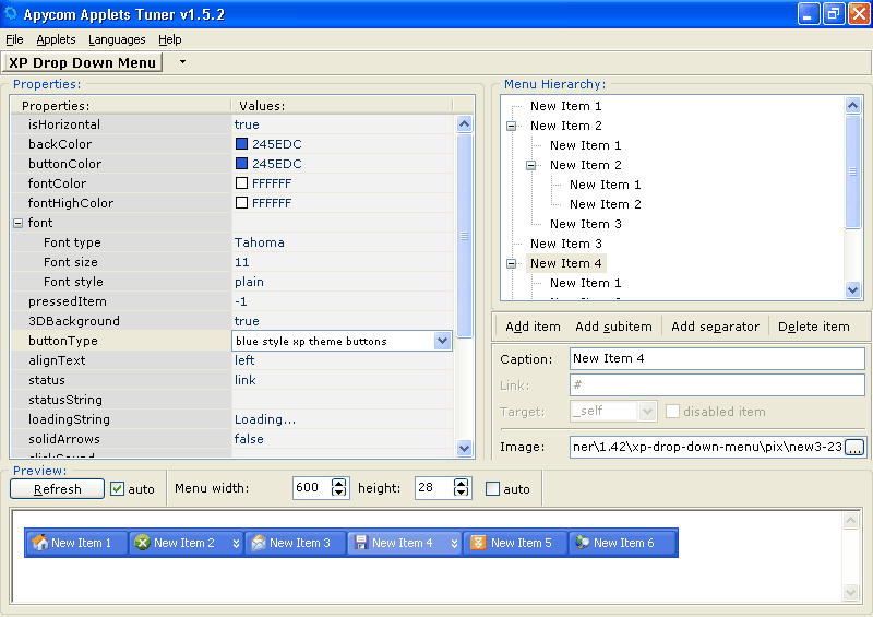 Setup your menu in a few minutes! Apycom Applets Tuner is an easy-to-use GUI wizard that gives you the