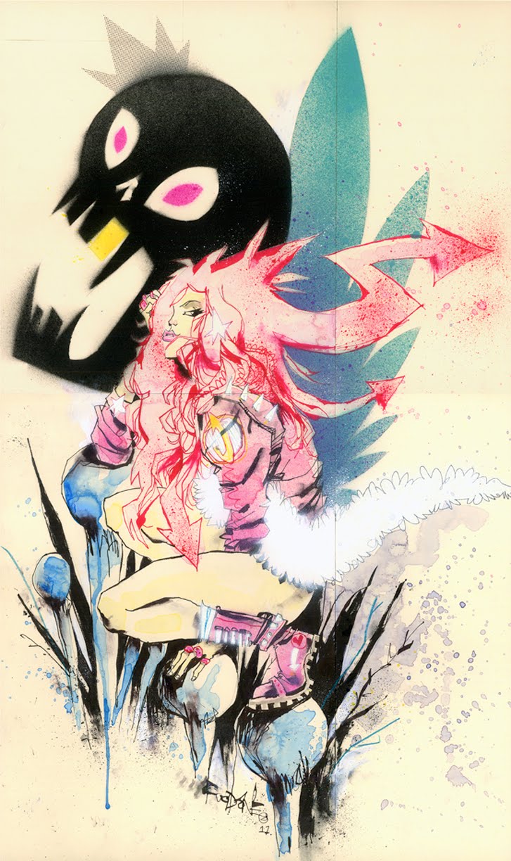 I am always somewhat moved and pleased when I see fan art work for nostalgic shows that far outstrip the source material. Jem and the Holograms had the label of being "truly, truly outrageous" but was more less a show where one could see where everything was going, and not much sparks in the journey there. This artwork isn't a great piece, but their is hint of a viewpoint, a twist of human emotion. Something the original show never had, to a large extent. This isn't stealing material, this is a marvelous reinvention, a foothold to quality. Bravo.