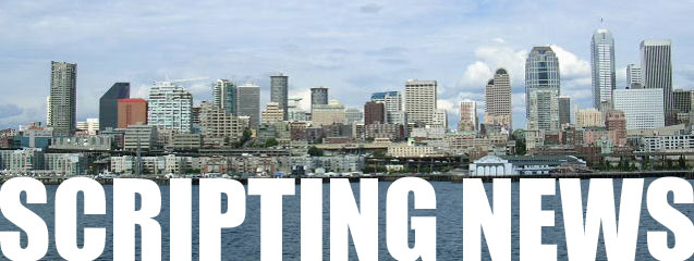 Wednesday, August 04, 2004Betsy Devine: "When I'm sober, I act the way most people act when they're drunk." Heh. Me too.  Tomorrow night Robert Scoble is hosting an open dinner in my honor, at 6:30PM at the food court of the Crossroads Mall in Bellevue. If you're in the area looking to geek out with some real geeks, this is the place to geek.   Greetings from Bellevue, WA. It's cloudy. The plane was full. Time for a shower, then my first meeting at 1PM.   Sean Bonner on lobbycon.  1995: "But after the six-hour flight, locked in a single position, a very unusual and awkward one, my body wouldn't straighten out. My energy flow was disrupted." This happened again. No room to breathe on the flight out, my pyloric valve slammed shut, and my back is all contorted. No energy flow. Breathe Dave.  Reuters: Microsoft launches Japanese weblog service.  Business Week: Don't Quote My Blog on That.  OPML blogroll for the RNC Convention Bloggers site.   Wired: "321 Studios, the company that sold DVD-copying software and faced an avalanche of lawsuits from the entertainment industry, shut down Monday."  Boston Globe: "'We're just looking to change how people connect to the Internet on Nantucket."  Off to Seattle at 7:30AM Eastern. Checked the forecast in Seattle, San Francisco and Palo Alto. When packing you never imagine the weather is very different from the weather you're leaving. But it is different in Seattle. I only packed one sweater. A mistake?