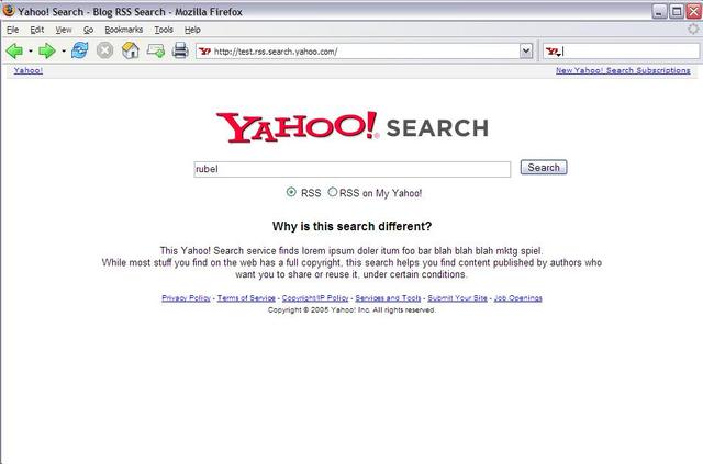 Now, the problem is, that while Yahoo's interface is pretty good, and lots better than most of the rest, it still shows you old items before new ones. Any of the competitors could leapfrog Yahoo. Want to give it a try? I can be hired as a consultant. Seriously. Let's get going on this.  News.Com: Amazon files for Web services patent.  Jeffrey McManus, in 2004: "The only hard questions asked by the audience were directed at Jeff, typified by a clueless and off-topic bomb tossed by Dave Winer, who tried to take poor Jeff to task for the fact that Amazon is a 'patent abuser.'" I guess I wasn't so clueless after all; "poor Jeff" is one of two authors of the Amazon patent.   Rogers: "My cynical suspicion is that Bush wants abortion to be safe, legal, and rage-inducing for the GOP base."  Using the OPML Editor to manage RSS subscription lists.  An important note about this feature. It works out of the box with NetNewsWire and Radio UserLand, and probably quite a few others (which ones?). I had to adapt the code to get it to work with Bloglines and RSS Bandit. I was able to do this because the formats they used are close enough to Radio's import/export format, and because users supplied me with examples of files. See "how to proceed" on that page for an idea of how the community can work on this. And I'm only willing to bend so far to accomodate creativity, because that's a form of lock-in. On the other hand, the OPML Editor basically undoes that lock-in. Here's a complete list of all OPML Editor docs available as of today.  Jon Udell's review of the OPML Editor.  Five years ago this would have been really big news. Maybe it still is?  Tried subscribing to Scripting News; it said it couldn't find it. Oh well.   Phil Ringnalda: "Now that is some serious support for autodiscovery."  News.Com: "My AOL is designed to give people the ability to customize the AOL portal based on specific needs and interests, including the addition of news feeds via Really Simple Syndication, or RSS, the company said."  Rebecca Mac is the user from hell. Coool!  Now that I can see her posts I have a bit of advice.   OPML Fan is Lisa Williams' OPML Weblog.  http://changes.opml.org/