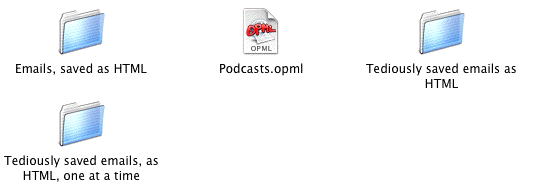 Dan MacTough is looking for help with the Mac version of the OPML Editor serving on port 80. Nathan Nutter explains how to export OPML for your podcasts from iTunes. I tried, it works! Via Jon Udell.