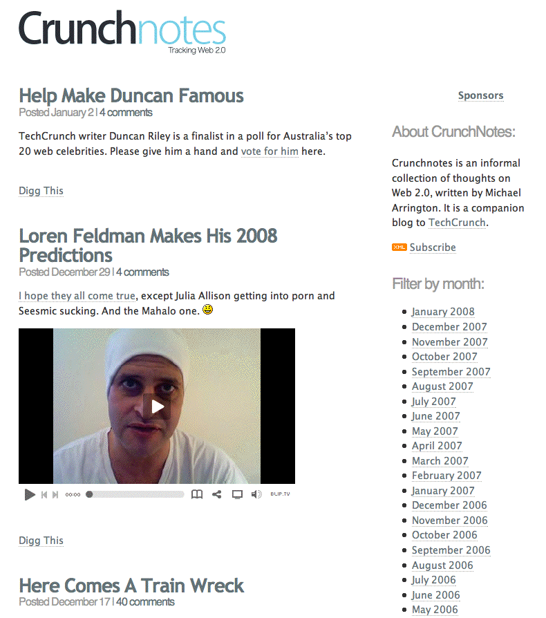 Hammock: "My blog still doesn't 'carry' advertising -- it is advertising." 8/3/06: "I have put ads on some of my sites, but never on Scripting News." Note that Mike Arrington, who started this thread, doesn't have ads on Crunchnotes. Curious to know why no ads there. Screen shot.