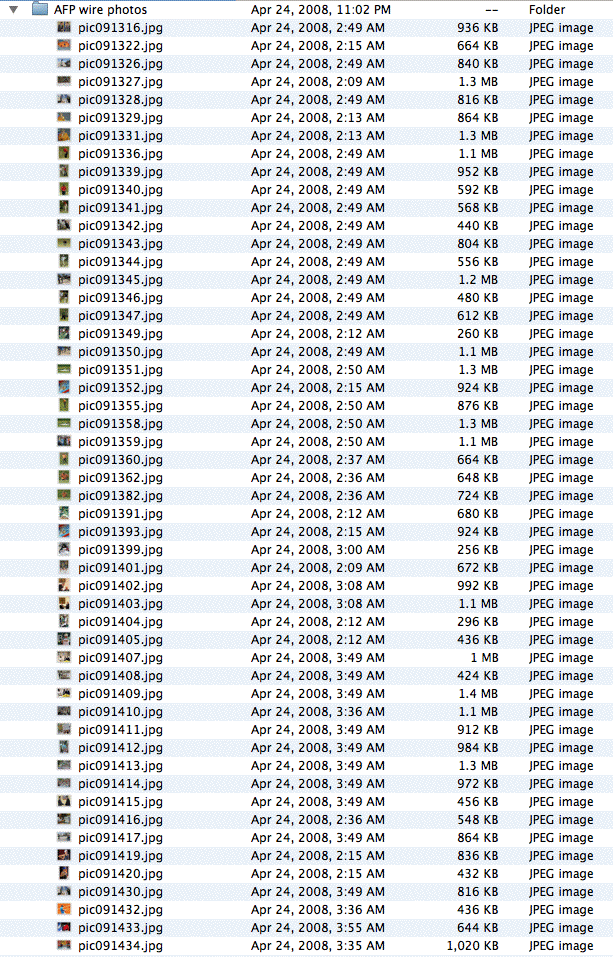 Here's the problem. You're watching pics go by and you see a picture of President Bush speaking at a conference on Children and Faith-based schools and think, man, that's an interesting picture, I want to show that to a friend. So you open up the pics folder and see a lot of pics with names like pic091337.jpg, pic091338.jpg and pic091339.jpg. How do you find the one you're looking for? Well, there is a way, believe it or not... Open the screensaverpics folder and type Faith-based schools in the Spotlight box in the upper right corner of the window. 13 pictures show up. Select-All, right-click, Open in Preview. Review them and voila, there's the one I was looking for. How did that work? Well, AP and AFP put metadata on their pics, and the FlickrFan process preserves it, and Spotlight can search it. Here's the Get Info box for the pic I was looking for. The red arrow points to the metadata. Tom is a smart guy, and a generous one. Thanks for passing this tip along! Government could help us use less oil and save money McCain and Clinton propose a moratorium on Federal gasoline tax for the summer to give the "average American" a break. It must test well with focus groups, but it's meaningless, because the prices would immediately adjust. If you lower the price, people will take longer trips, drive instead of fly, increasing consumption, driving the price up. There might be a bit of a benefit to drivers for a very short period of time, but in the end it would be a wash. This is what economists say, and it makes sense. President Bush wants more exploration, and to build more refineries, these are medium to long-term things that likely wouldn't do anything for us right away. But wouldn't switching to smaller European style cars do more to ease the problem than increasing exploration or creating more refineries? And the money we'd give up for Federal gasoline tax could be better spent on putting high capacity network lines under our streets to increase communication. Some of the car trips must be to exchange information that coud be replaced by moving packets around at gigabit speeds. It wouldn't cost much to retrofit a few cities with really high speed lines, then we could get to work on developing the services that would make life more interesting, fun and efficient.