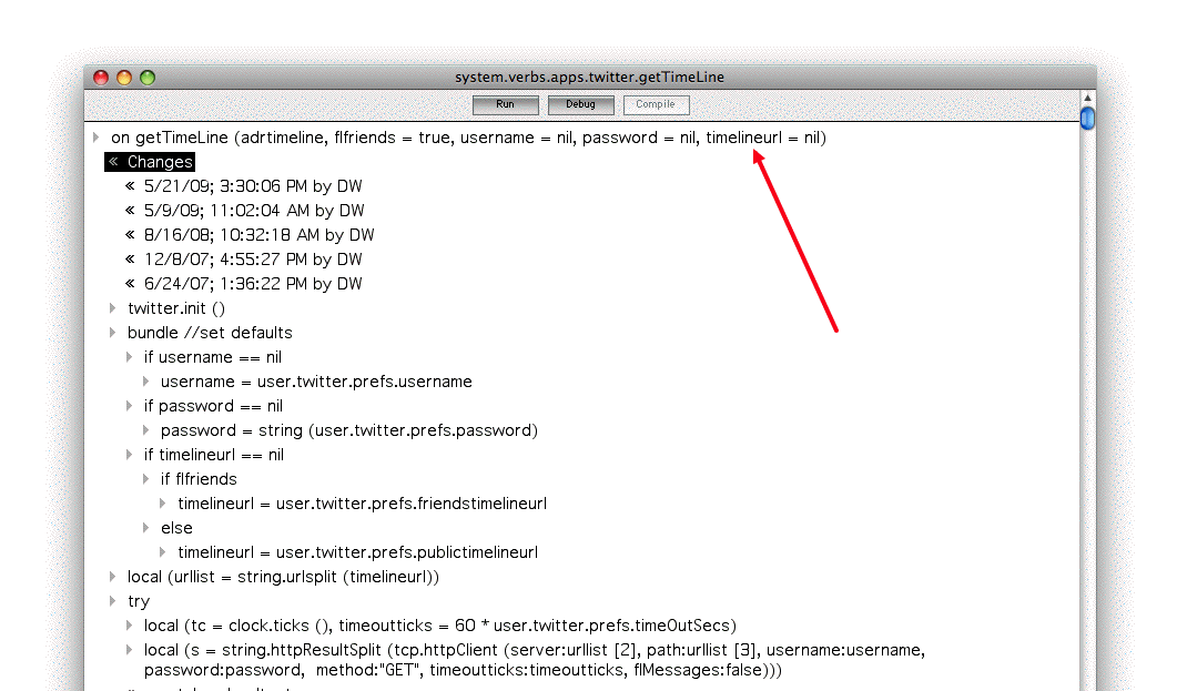 First the fun part. I started a Twitter Babes list, but got really nervous about it, fearing backlash, so I deleted it and gave it some more thought. It came back to life as my Entourage list, very much gender-neutral, there are men and women on the list. http://twitter.com/davewiner/entourage These are people who I admire for their intellect, big heart, creativity, willingness to take a chance. Some I would trust my life with and others I'd trust my heart. They're good people to hang with. I don't agree with them all the time, I even compete with some of them. Some I don't know well but find interesting. I'd love to say all this on the list, but there's no way to. That's feature #1. You must be able to explain what a list means. Even if it's only a link to a web page where you explain it. A list is like a Twitter user. In fact some of my placeholder Twitter accounts will now go away. I no longer need the page of NY Times twitterers, or the Top 100, or even the Berkeley folk. So it makes sense that all the annotations, all the metadata that goes with a user, should also go with a list. People are going to want a way to suggest a new addition to a list, and people with lists are going to want a way to have new additions suggested. It should also be possible to include a list within another list. My friend Cori has a list of Bay Area people. She should be able to include my list of Berkeleyites, since Berkeley is in the Bay Area (of course). That way when I discover someone in Berkeley she automatically gets updated with that person. All the ideas that we had for OPML directories apply to Twitter lists. In fact there should be a way to export a list as OPML, and I think Twitter ought to do this, as a way to create systems that bridge in and out of Twitter hierarchies dynamically. Very powerful stuff. If they won't do it, I'm going to suggest that Matt get on top of this asap. I'm doing so much stuff with WordPress these days, I'm starting to see it a bit as a platform the same way I view Twitter. I wonder if that's why Matt embraced rssCloud so quickly? Heh. Anyway I have projects I'd like to try, but I'm really busy and probably won't get to them soon enough. If I were viewing lists as an entrepreneurial opportunity, the first place I'd explore is doing a list browser and editor, with a Suggest-A-User feature. If you want to start one of these, I'd be interested in participating, for equity. BTW, lists are obvious gold for search engines. A new OS feature worth upgrading for It's been a long time since an operating system had a feature compelling enough for me to justify an upgrade. But last night I thought of one. The web is totally getting reverse-chronologic and imho that's a good thing. It's becoming easy to find the new stuff everywhere. Everywhere but on my local area network, that is. When something new arrives, a podcast or an enclosure, or I download a new app or a song or TV show, on any of my machines, I'd like it to roll up into a list that I can scroll through, and have a blog-like calendar structure that I can search. That's all -- nothing more.