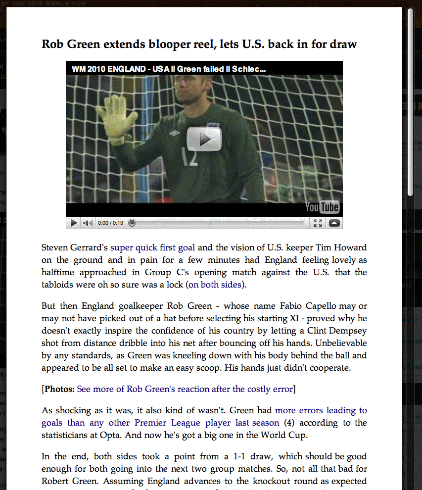 Clearly some of the live-bloggers have advanced editorial tools behind the scenes. For example, I was watching the NY Times soccer site live-blog yesterday's game between Ghana and the US. Lots of structure evident there. Wonder what their editing tools look like?