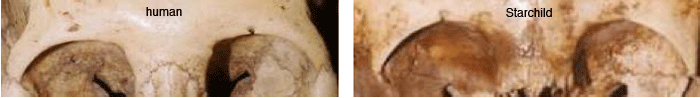 Humans have an inner ear which we use to determine what is up and down, to balance ourselves and to detect left - right movement. It is essential to our existence on this gravity planet. The Starchild has an enormous inner ear, several times larger than that of a human. Why? Perhaps it was also many times more sensitive to small changes of position and movement. The location of the ear hole is also different in the Starchild, being lower and more towards the front of the skull. These types of deformities defy explanation.
