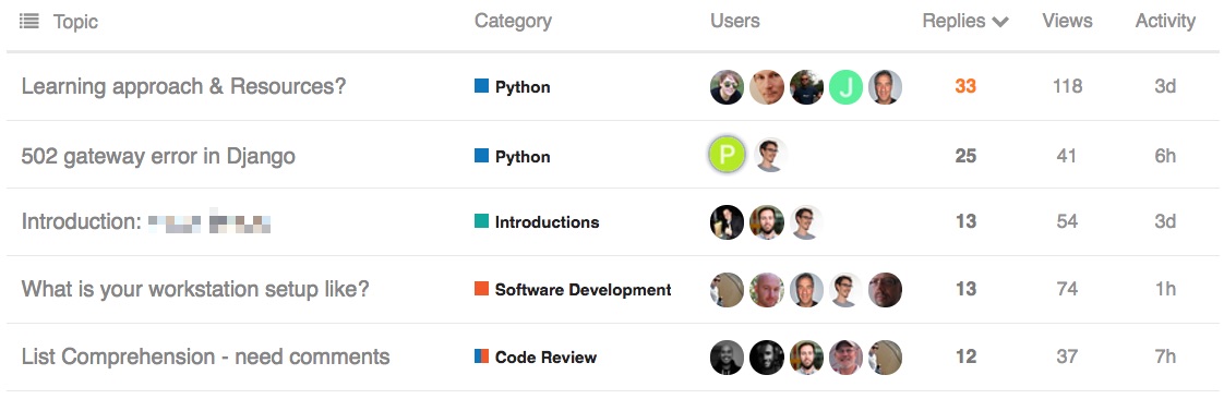 PythonistaCafe is built on a private forum platform, where we ask questions, get answers, and share progress: